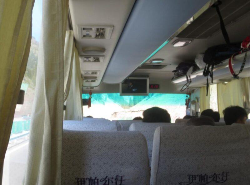 ツアーバス車中の様子。自分が乗車したときは既に9割座席が埋まっていた。この後、上海城南門近くの2箇所でも客を拾う。1人旅の太めの女性と、男女2人組み4名が乗り込んできた。