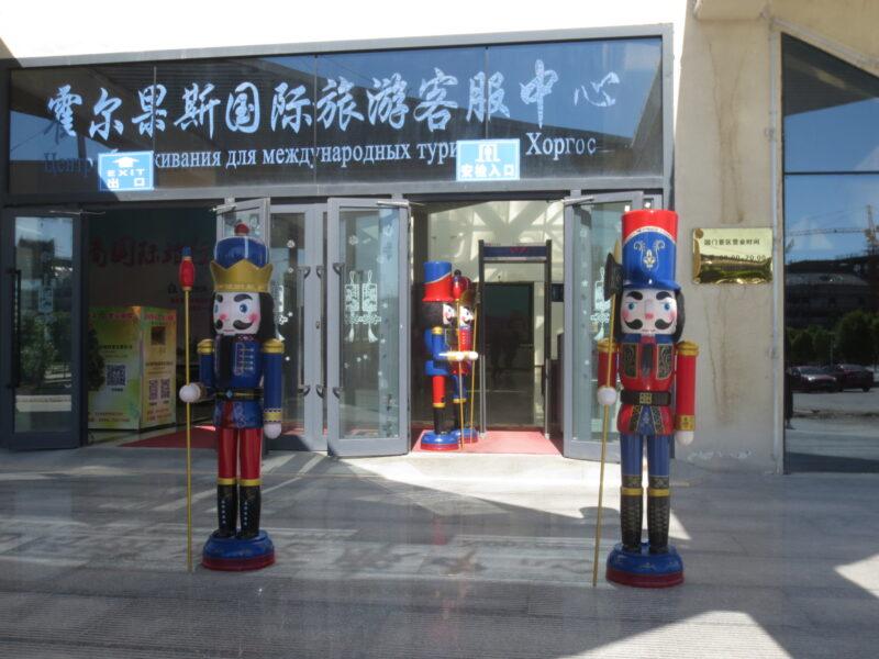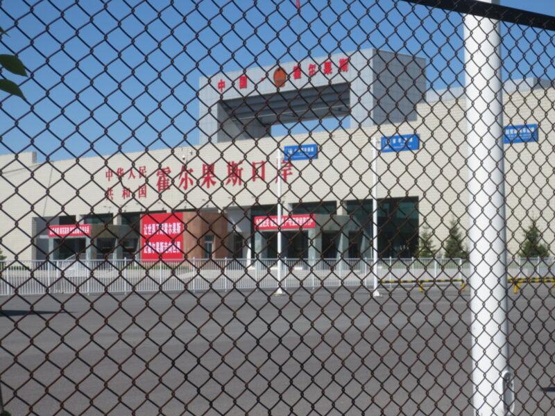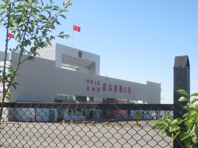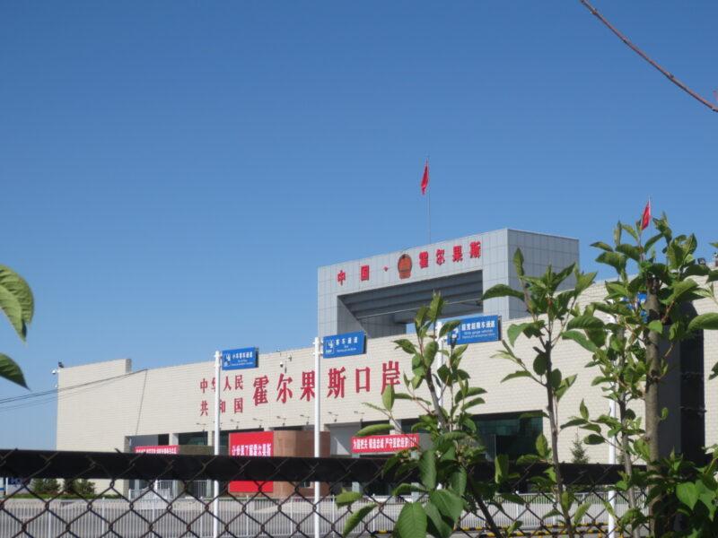 「霍尓果斯口岸」の建物。「口岸」とはイミグレーションのこと。