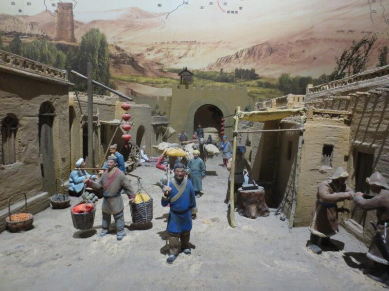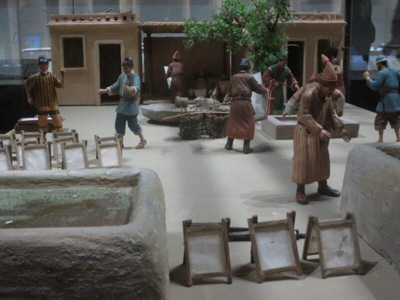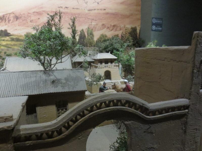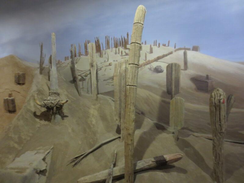 こちらは楼蘭から南西に約100㎞程離れた「小河墓地」と呼ばれる場所の模型。小さな河のほとりにあった墓地であるが、その河は枯れ果て今はない。ここに1000体以上のミイラがまだ眠っている。