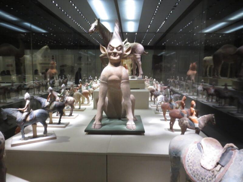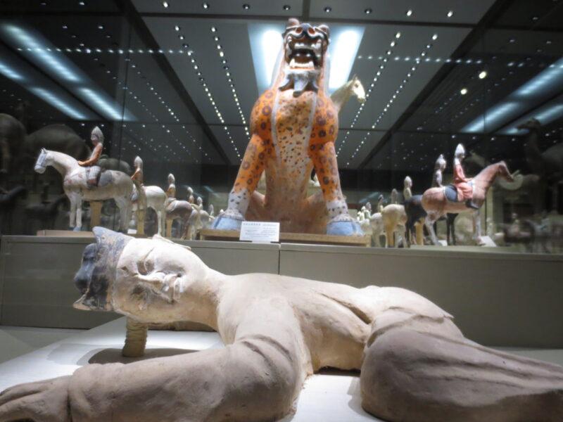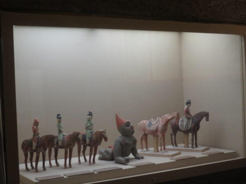 唐時代のもので、墓の中に埋葬されたもの。主人を悪霊から守るために、これらも一緒に埋葬された。