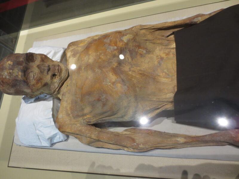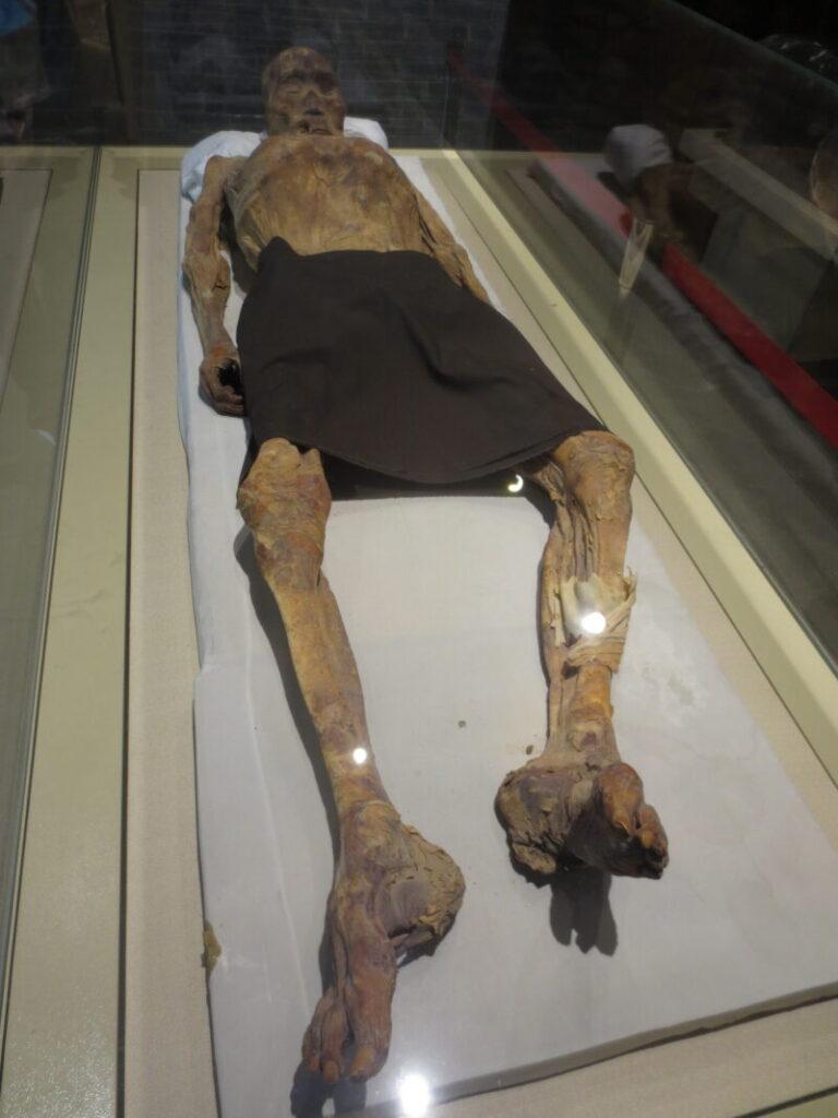 こちらは且末(チャルチャン)で発掘された2800年前の男性のミイラ。
