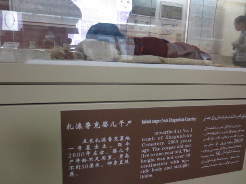 新疆ウイグル自治区博物館のハイライトである「楼蘭の美女」の展示。