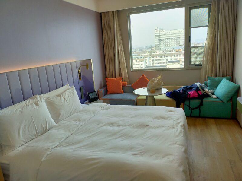 ホテルは鼓楼の目の前にある「漫心酒店」を予約した(写真は撮影したもの)。単純に、開封は初めてで土地勘がなく、鼓楼がある付近が開封の中心地らしかったので、ここにした。実際に立地的にもここへ宿泊して正解であった。