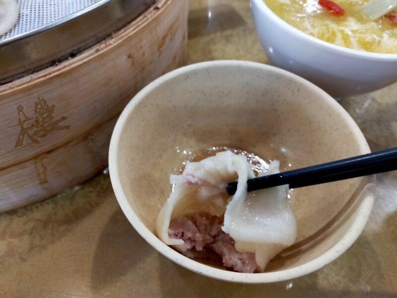 見かけは上海の小籠包よりやや大きく、中に少し肉汁はあるが、小籠包のようなスープはない。