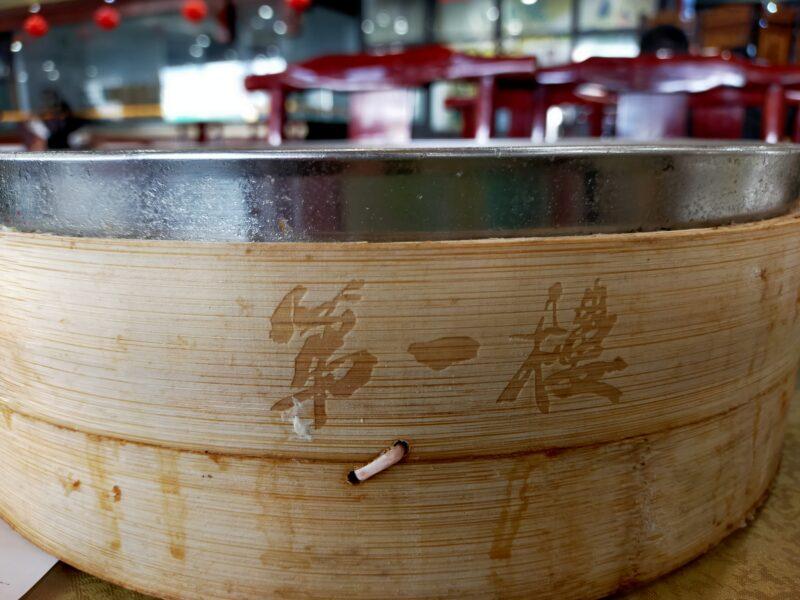 開封の老舗、「第一楼」の名前が刻まれた蒸篭。