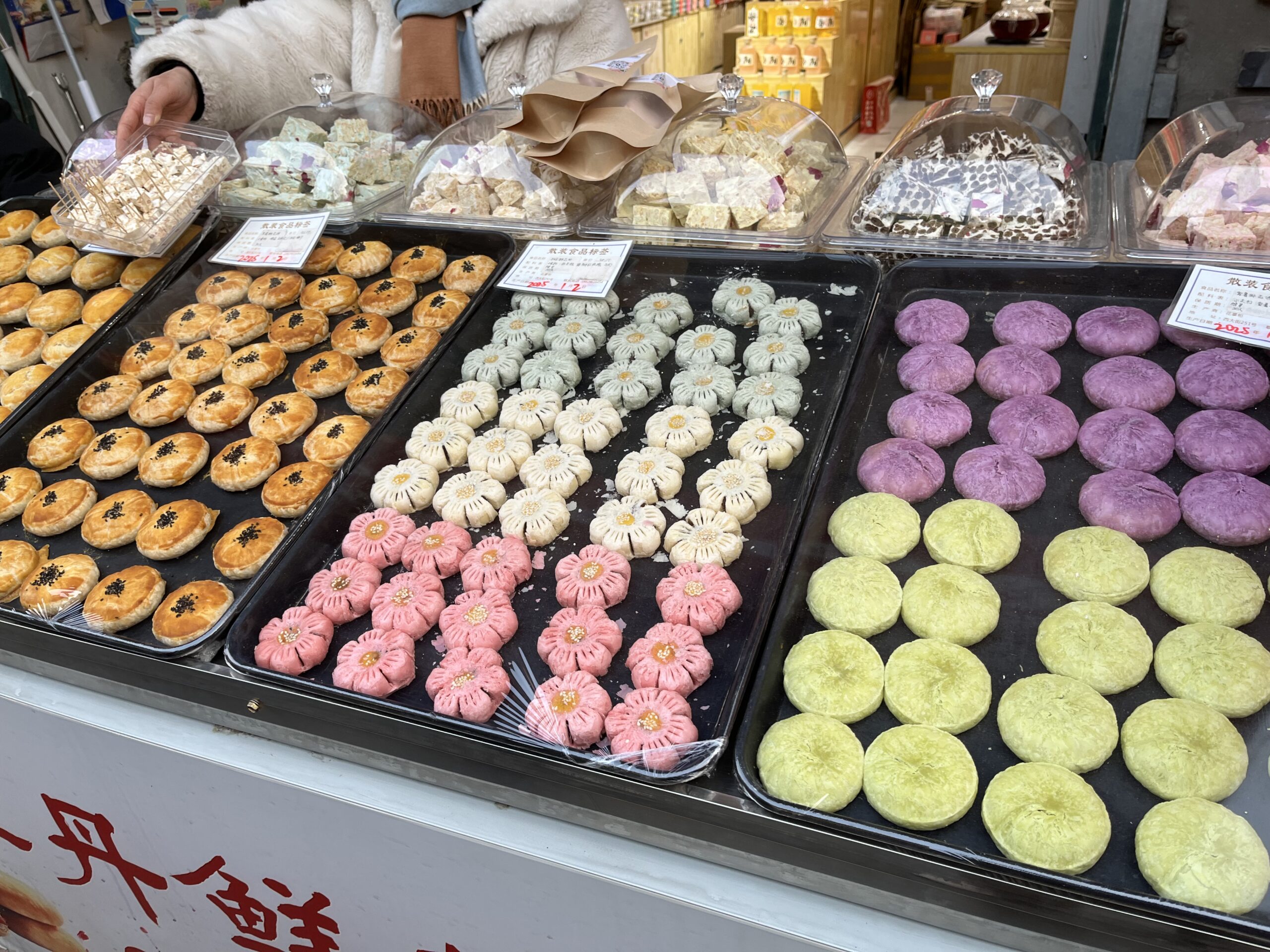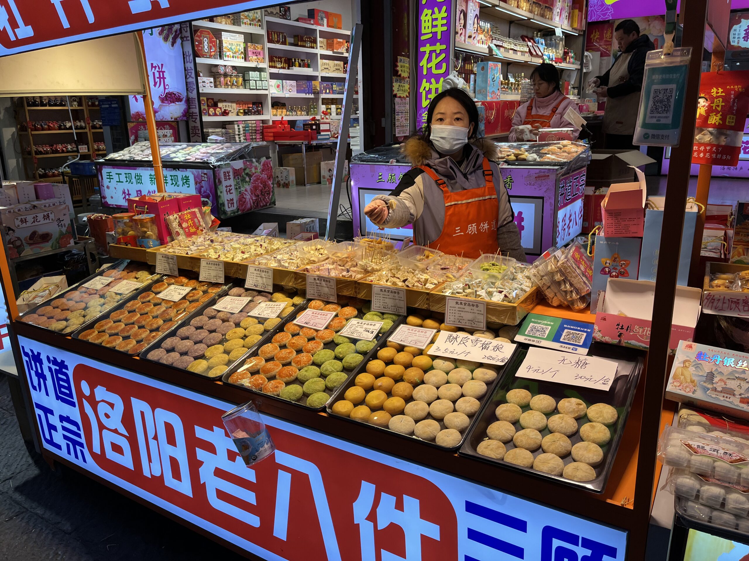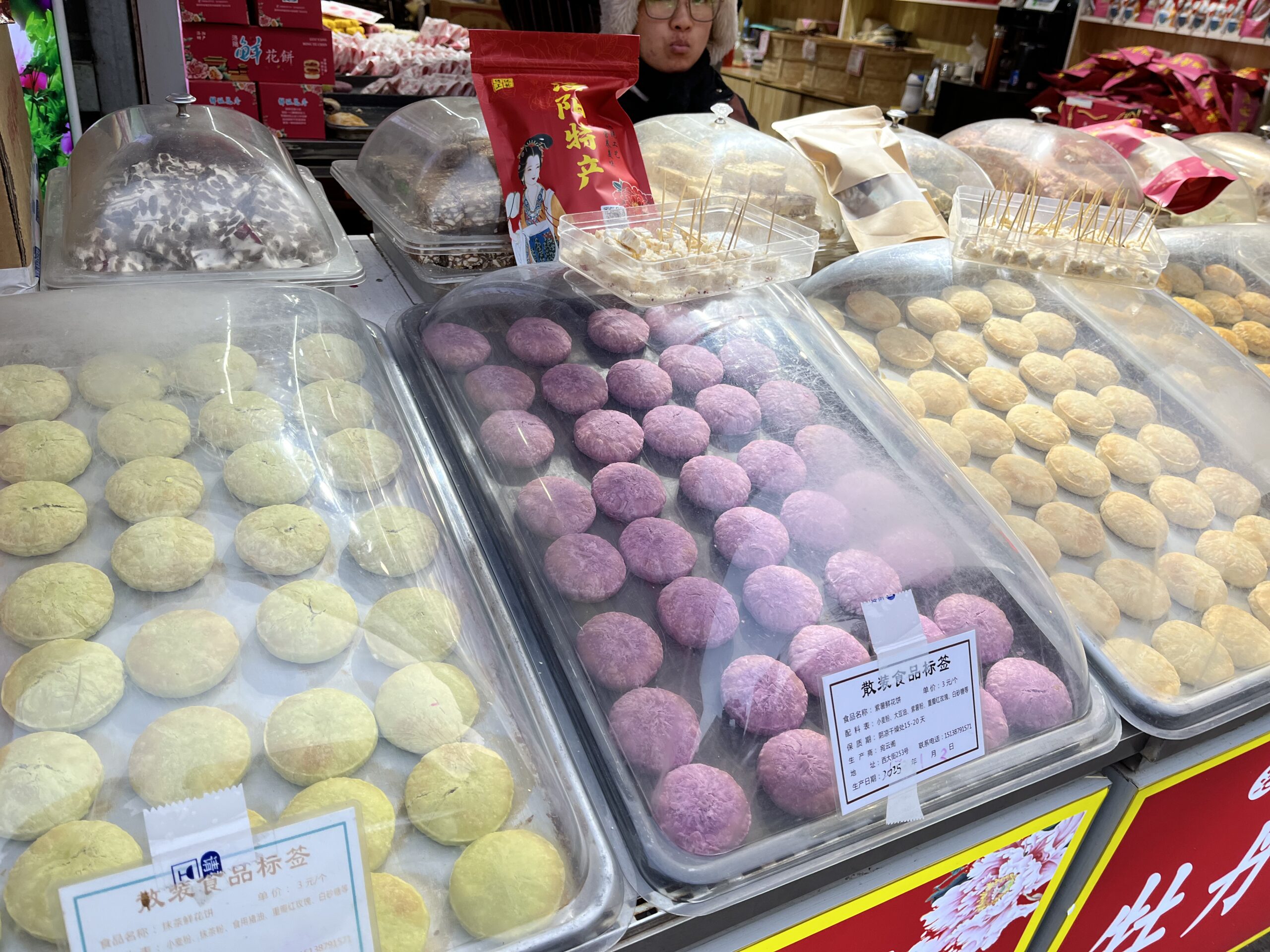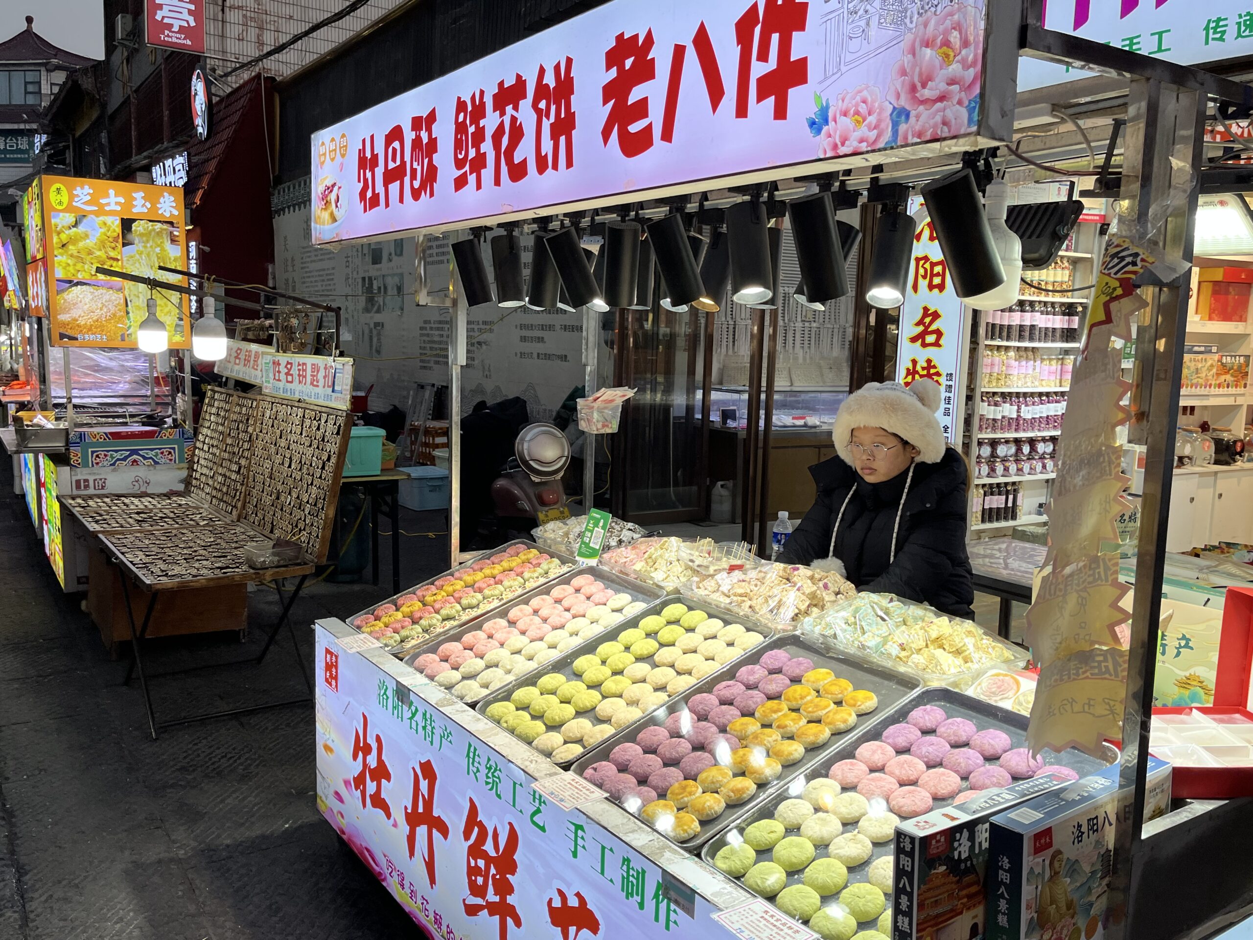 洛陽のお菓子、見た目はきれいなのだが、実はあまり美味しくない。洛陽博物館でも、ここでも試食を食べたが買う気にはならず。