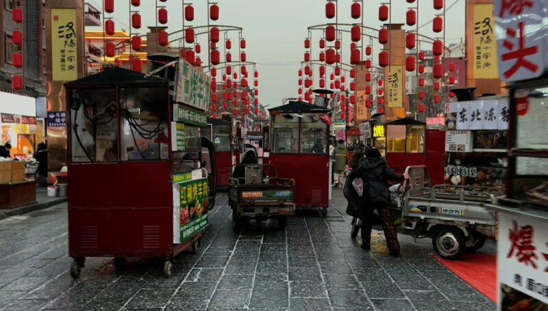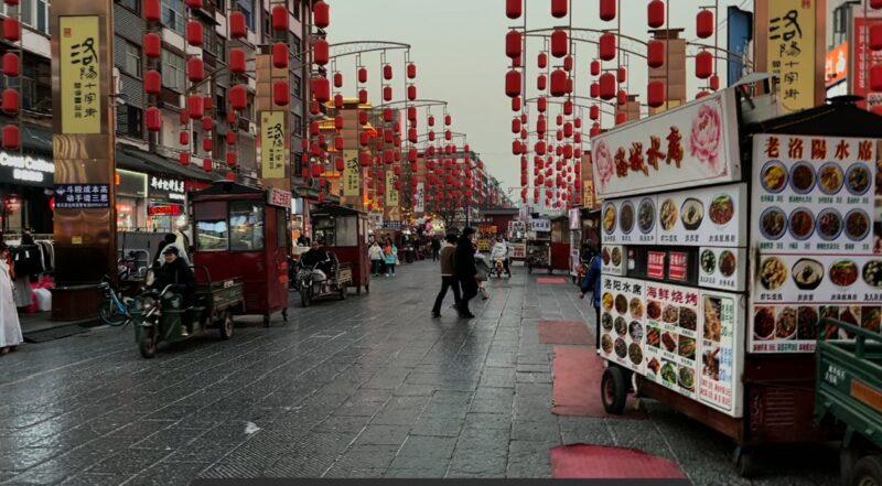 麗景門から一直線に古城内を歩いていたら、一昨日にも来た「洛陽十字街」の屋台街に出て来た。しかしまだ屋台は出ていない。