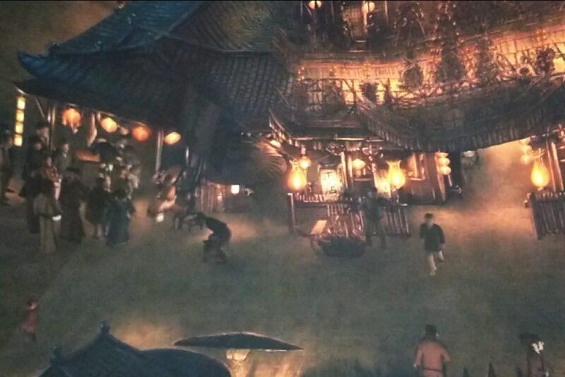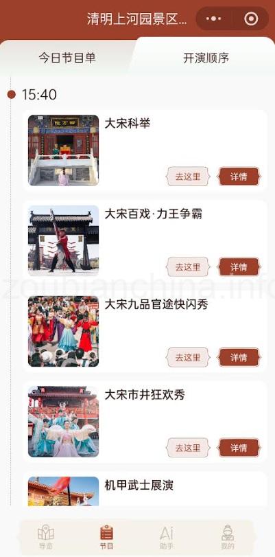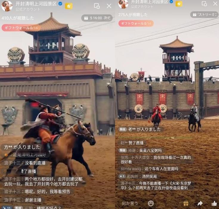 微信のミニプログラムを見ると、ここで激しい戦闘のショーが行われている。「清明上河図」では、このような戦闘を描いた場面はなく、天下泰平の世の様子が描かれている。