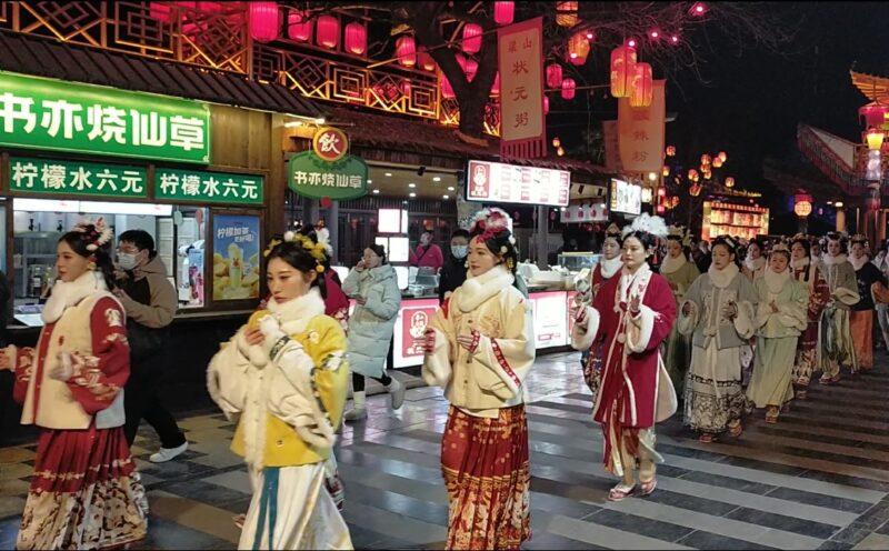 暫く歩いていると、漢服を着た集団行進に出くわした!