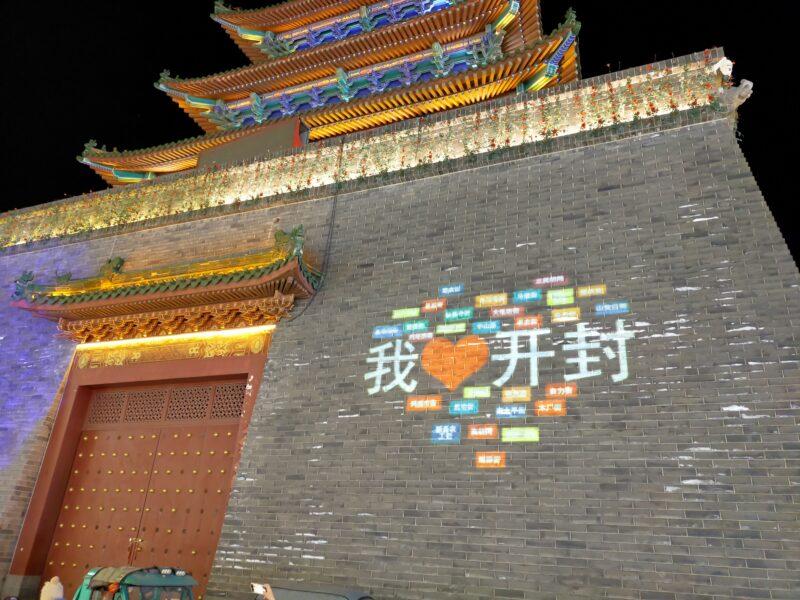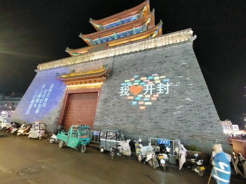 ホテルのベランダから眺めた開封鼓楼の様子。