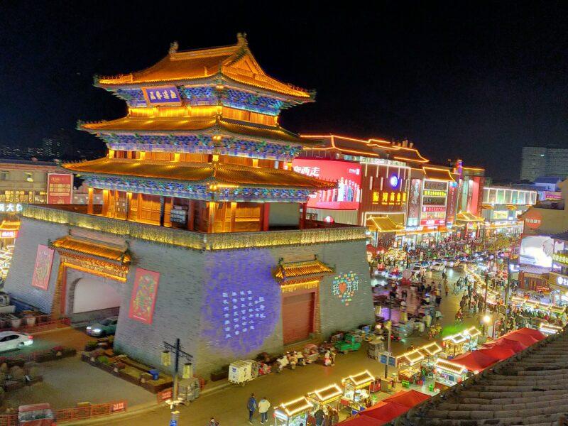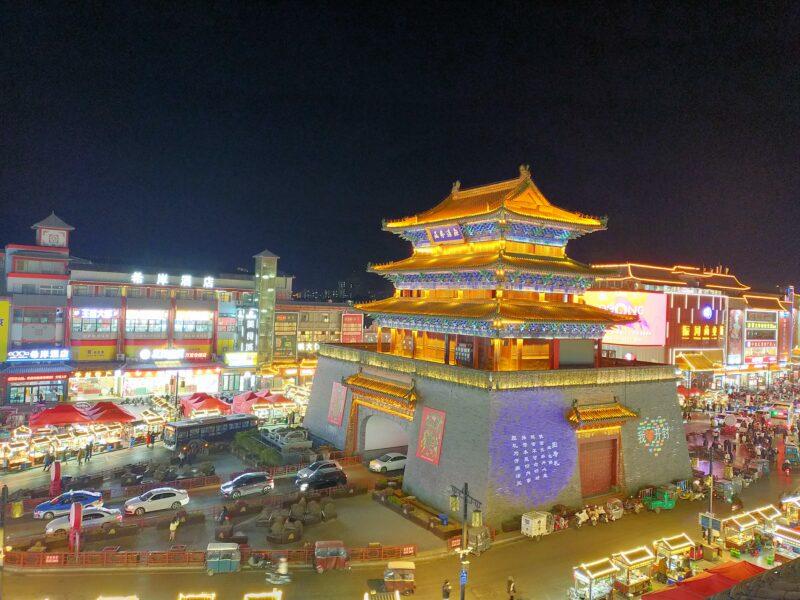 鼓楼周辺は屋台が多く出ており、夜市で大変賑やかであった。