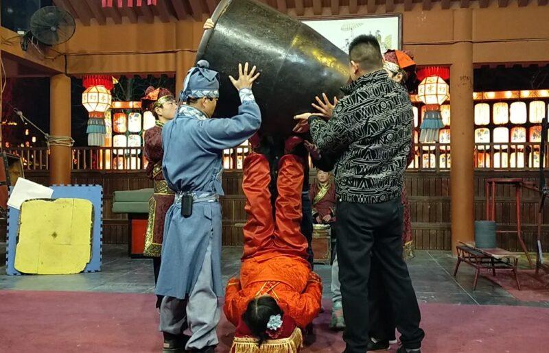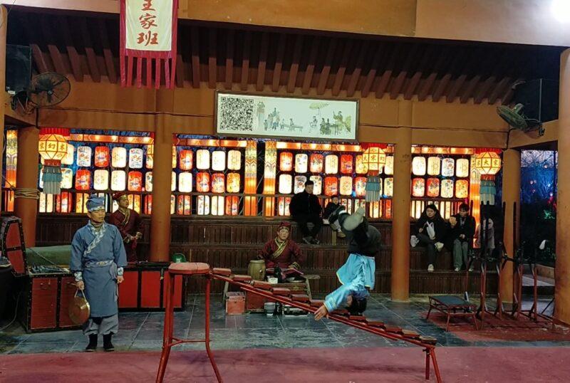 通りががった半野外の小屋で雑技をやっていたので見学した。
