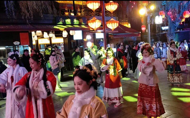 場所を変えて踊りだした!これらの踊りの様子は実際の「清明上河図」には描かれていない!!