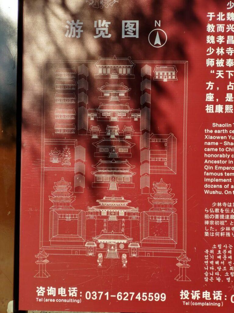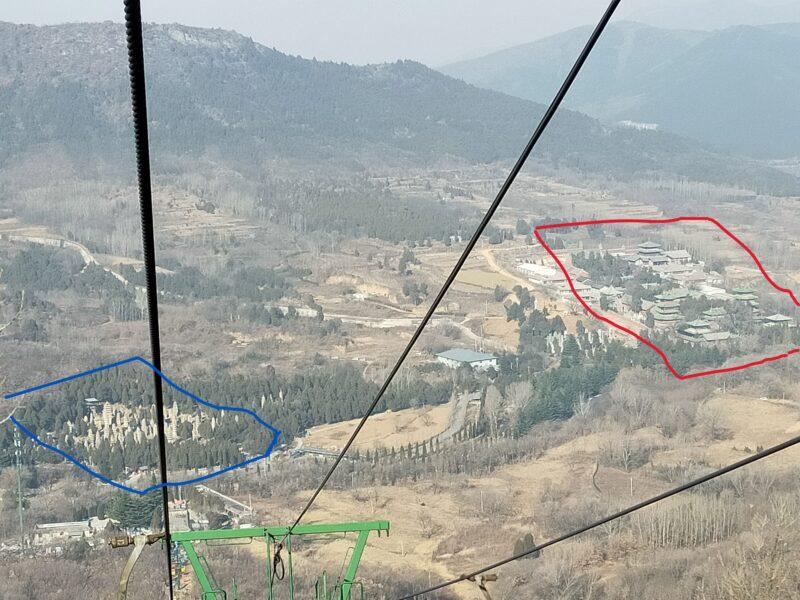 赤枠の箇所が「少林寺」で、青枠の箇所が「塔林」である。