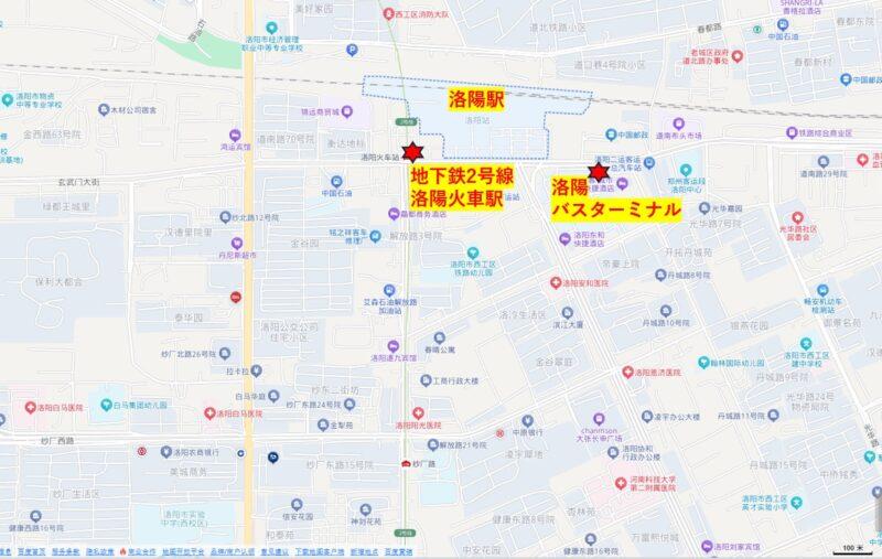 洛陽バスターミナルは、洛陽駅正面から見て左対面にある。