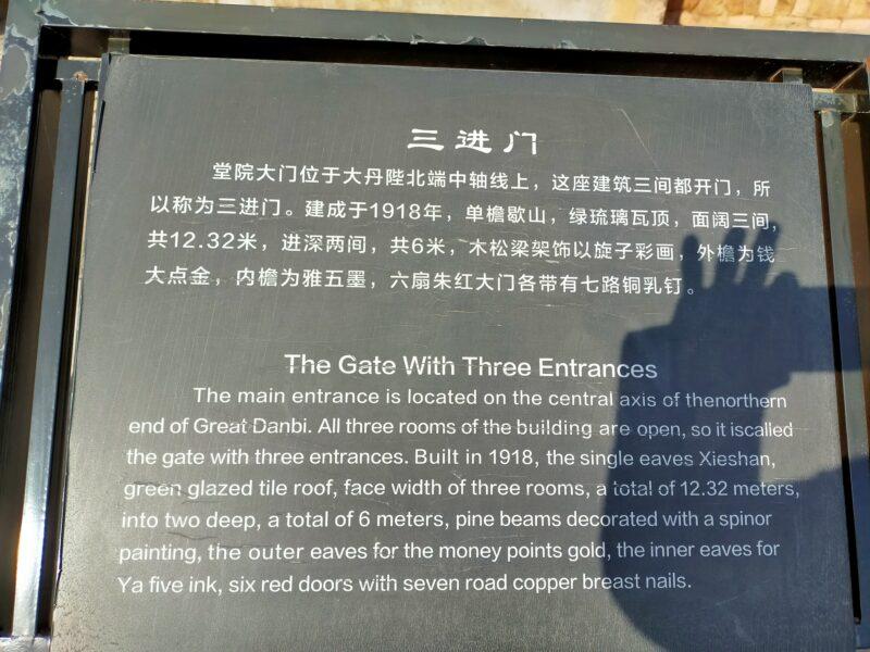 門が3つあるので「三進門」と呼ばれる。常時、3つの門はみな開けてあったらしいが、来た時は中央の門だけ開いていた。