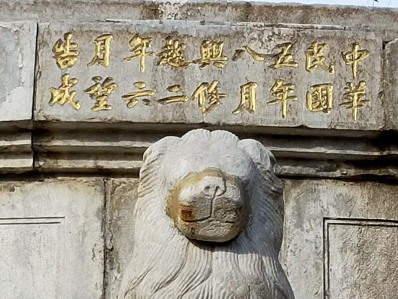 「中華民国五年八月輿修越二年六月望告成」と描かれている。「中華民国五(1916)年8月に着工、二年後の1918年6月の旧暦の15日に完成を告げる」の意味。