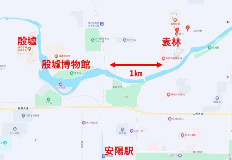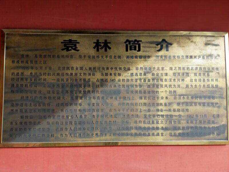歩いても行けるほど近い場所にある。何故、袁世凱の墓所が殷墟の近くにあるのか?文明発祥の地の近くを狙って、わざわざ造営されたのか?袁世凱が逝去したのは1916年8月で墓所が完成したのが1918年。殷墟が発見されたのは1928年。墓所建設の方が先である。結論を言うと、たまたま袁世凱の墓所の近くで殷墟が見つかったことになる。