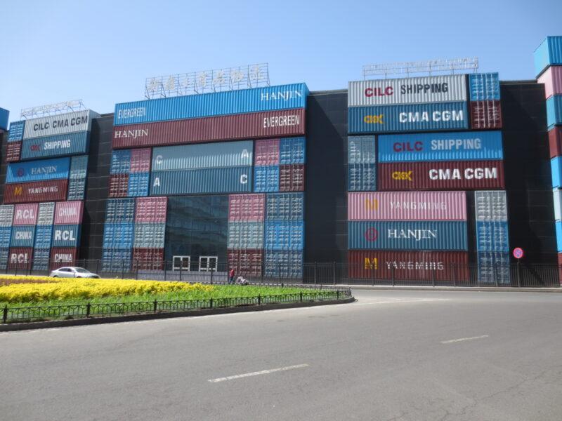 烏魯木斉南駅は丘の上にあり、駅前にはコンテナが詰まれていた。