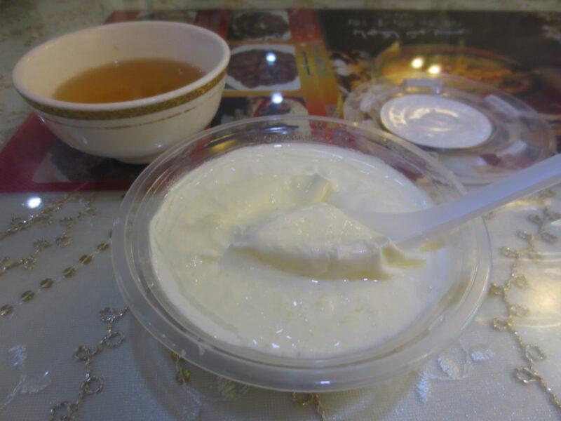 初めにヨーグルトを食べる。