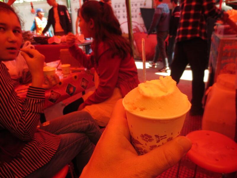 さっぱりミルク味で美味しかった。イーニンでも何度か食べたが、ウイグル族が売っているアイスは自家製がほとんど。