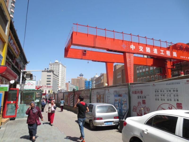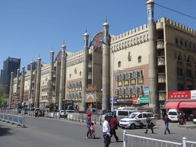 新疆国際大バザール。もともとローカルのバザールがあったが、改装されて「新疆国際大バザール」として開業された。入場規制があり、中へは入らなかった。
