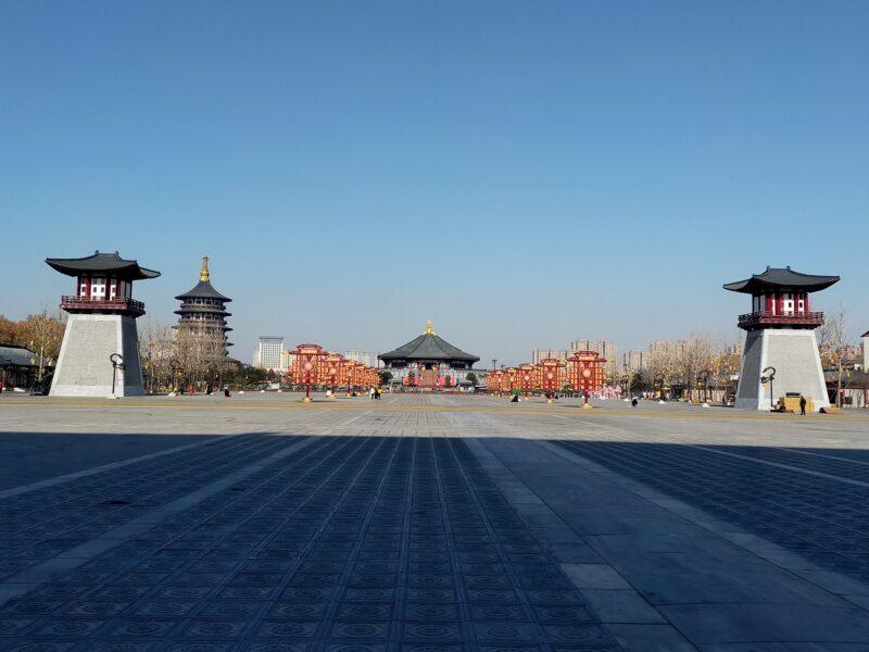 再び応天門の上段から見た応天門広場と明堂天堂。この後、洛陽博物館へ行く。