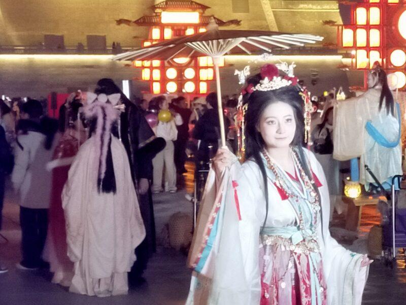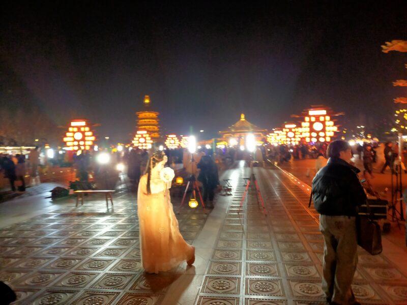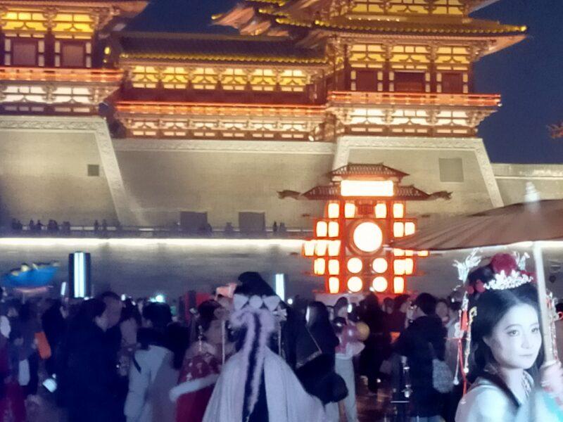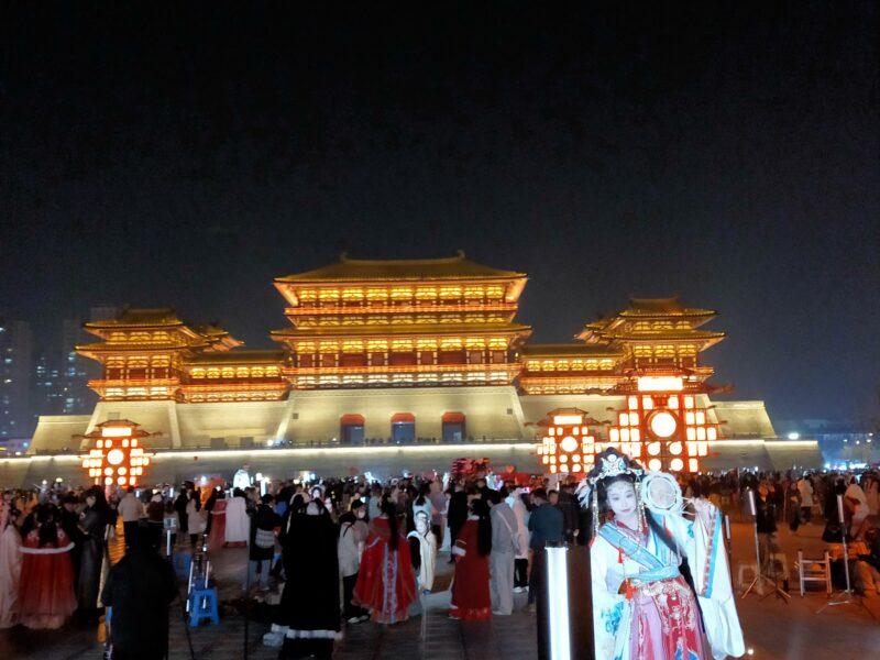 たくさんの人がいる理由は、応天門の夜景を背景にコスプレ目的の撮影のためだ。