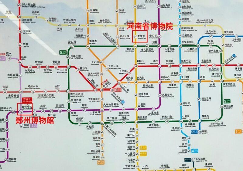 鄭州市地下鉄地図。関虎屯から奥体中心まで約50分掛かった。結構遠い。