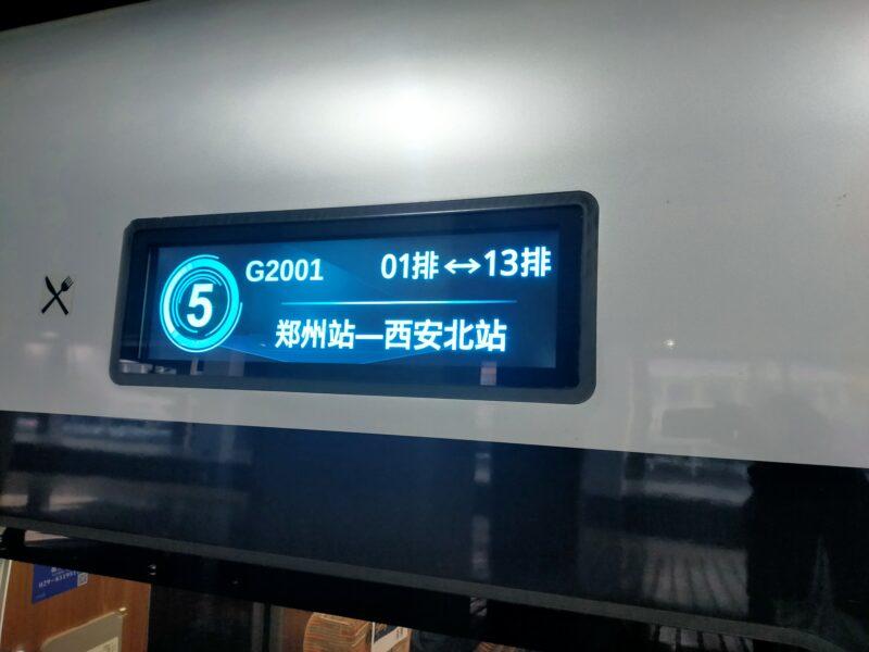 自分が乗車するのはG2001 鄭州始発。