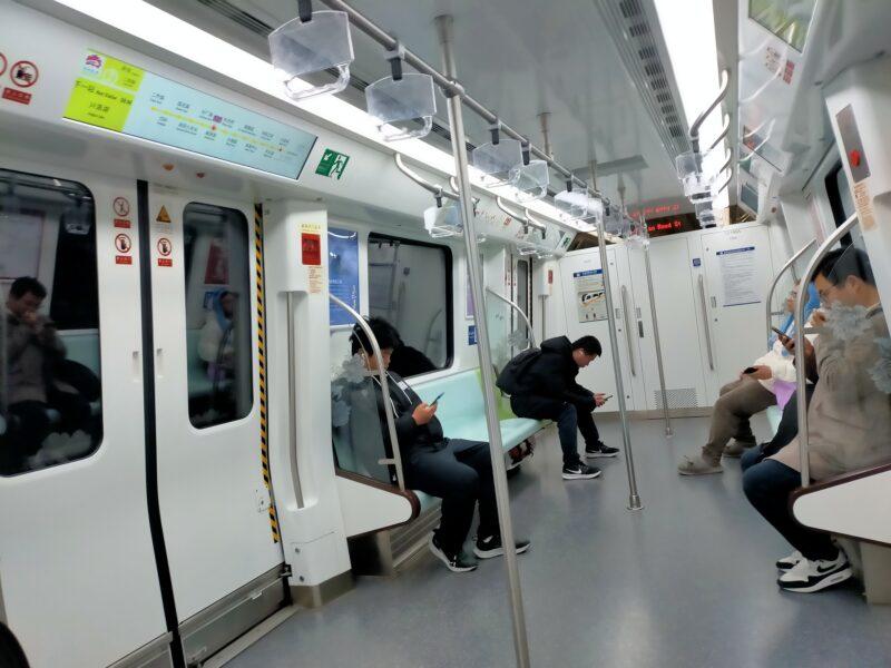 洛陽市地下鉄車内の様子。