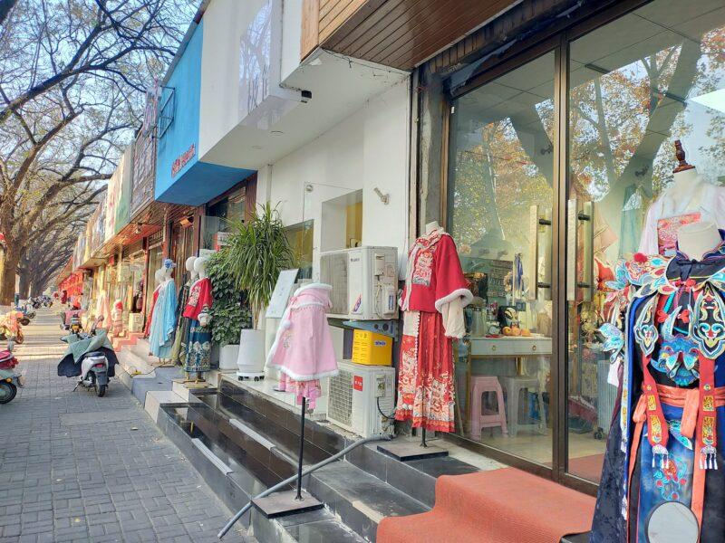 中州国際酒店から更に5分ほど歩く。洛陽のメイン広場である応天門広場から近いためか、レンタル衣装店が多い。ここでも当然の如くコスプレ観光は人気である。